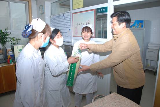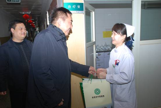 大年初一早晨,院长、党委书记刘勤社、副院长魏少阳、党委副书记李玉明分别带领各处室负责人赴各病区、门诊医技科室、财务、总务、保卫等一线部门慰问职工,向坚守工作岗位的一线工作人员拜年并深入病房看望住院病人。